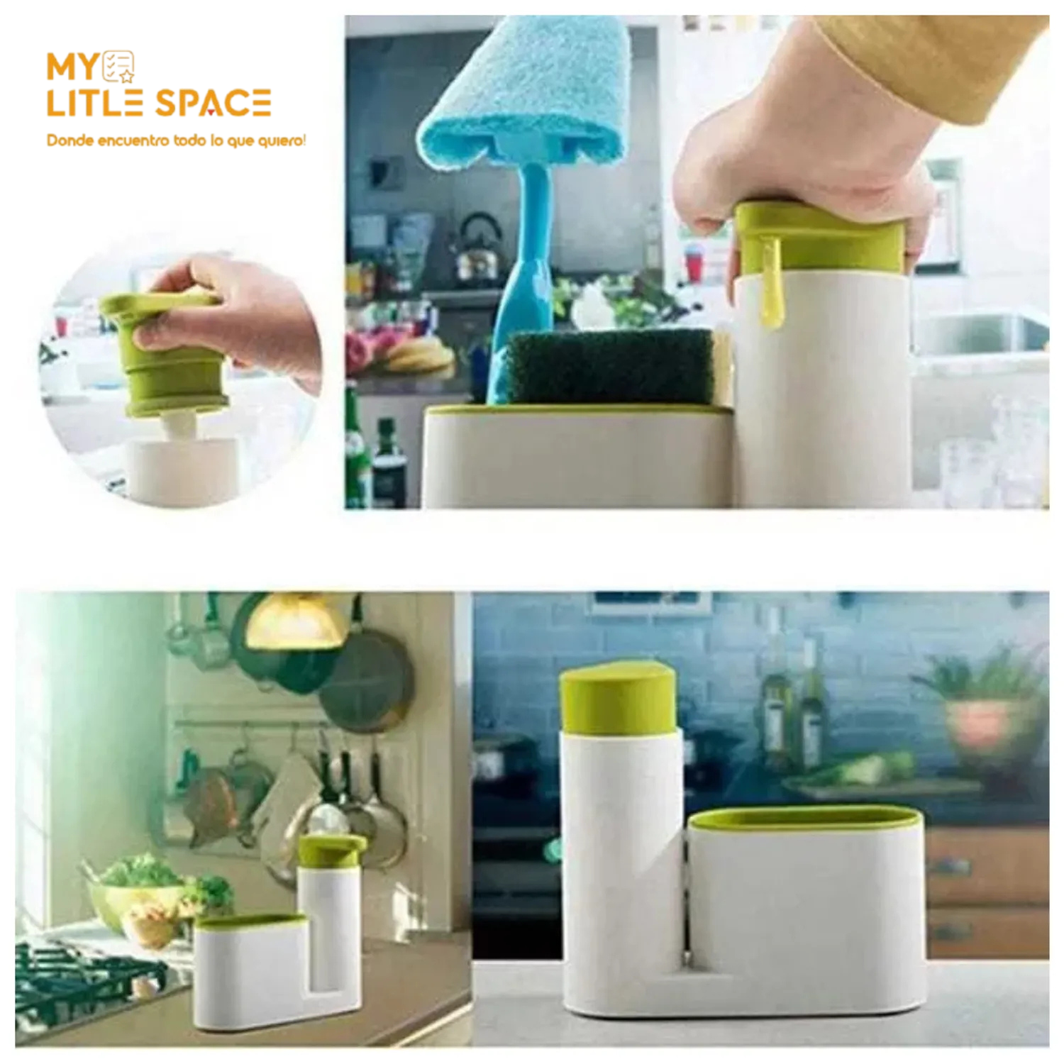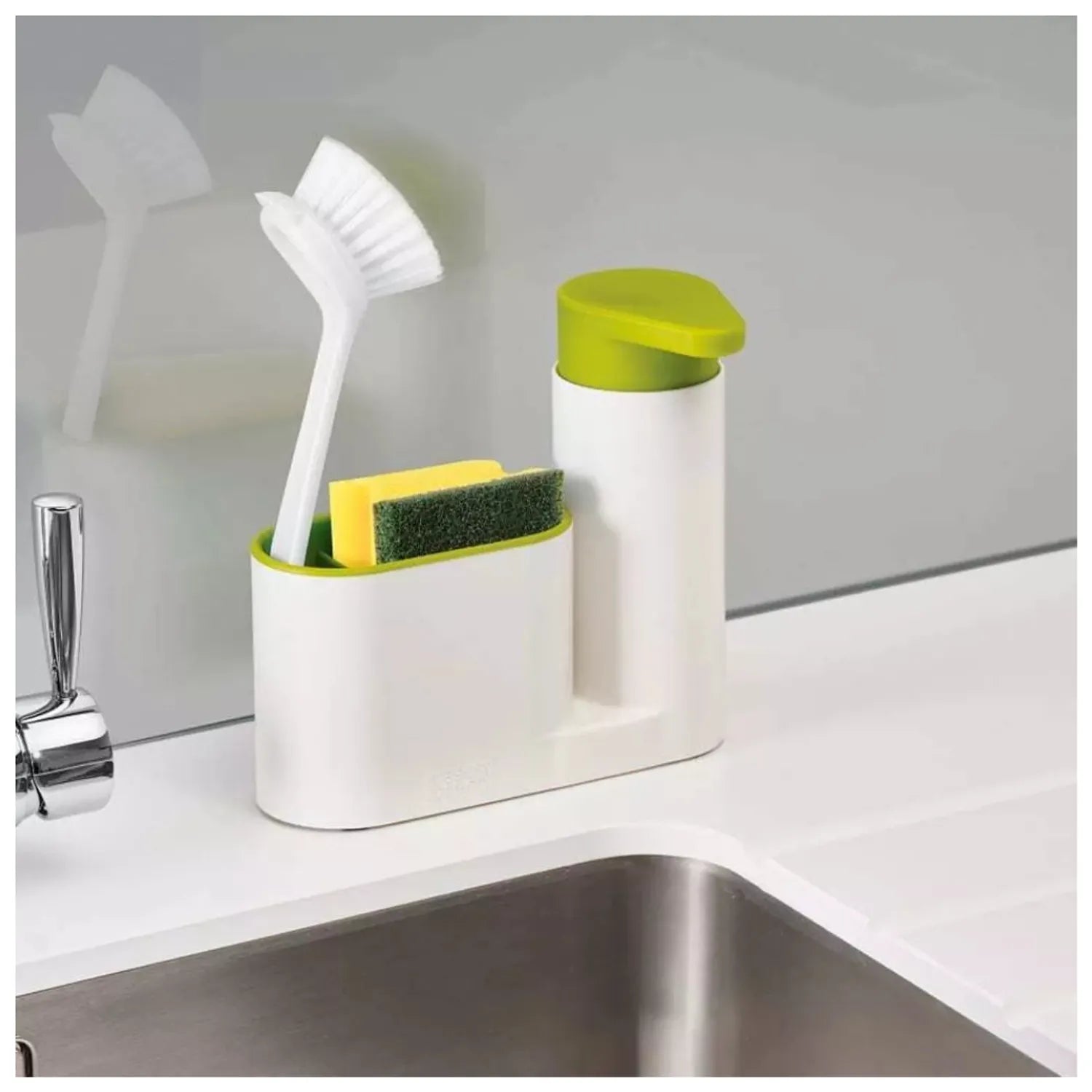 Mantén todo ordenado y al alcance tu cocina, integrando un depósito para jabón recargable y compartimentos para esponjas y cepillos. Su diseño compacto y moderno, fabricado en acero inoxidable resistente a manchas y óxido, es la combinación perfecta de funcionalidad y estilo para tu cocina.