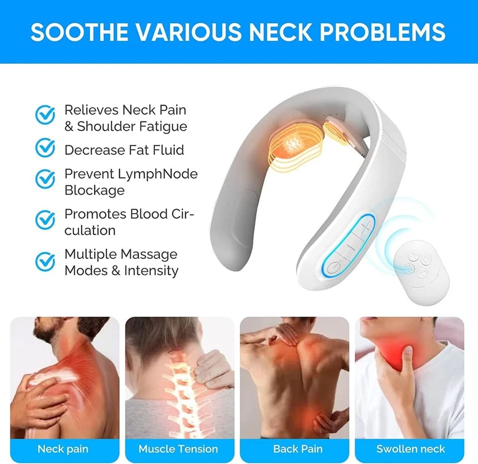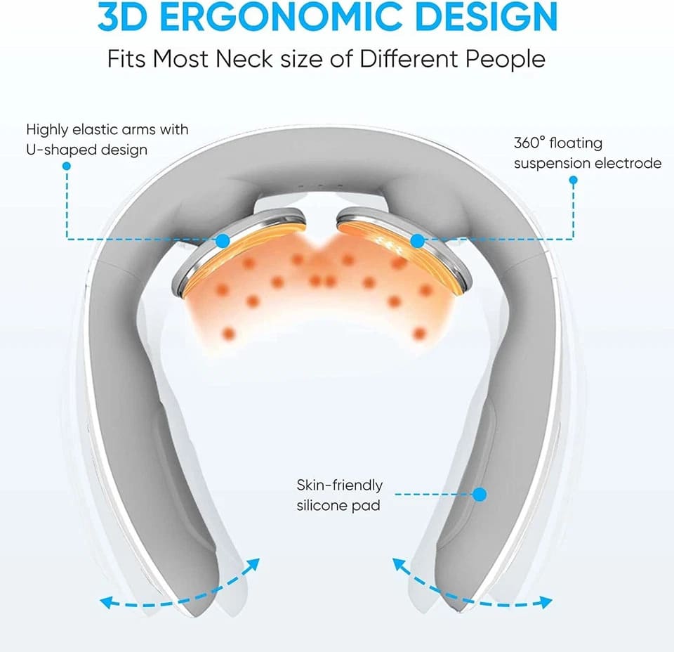 Este dispositivo combina tecnología de impulsos electromagnéticos de baja frecuencia con calor terapéutico para ofrecer un masaje profundo y relajante en el cuello y la espalda. Su diseño ergonómico y portátil lo hace ideal para usar en casa, en la oficina o durante viajes.